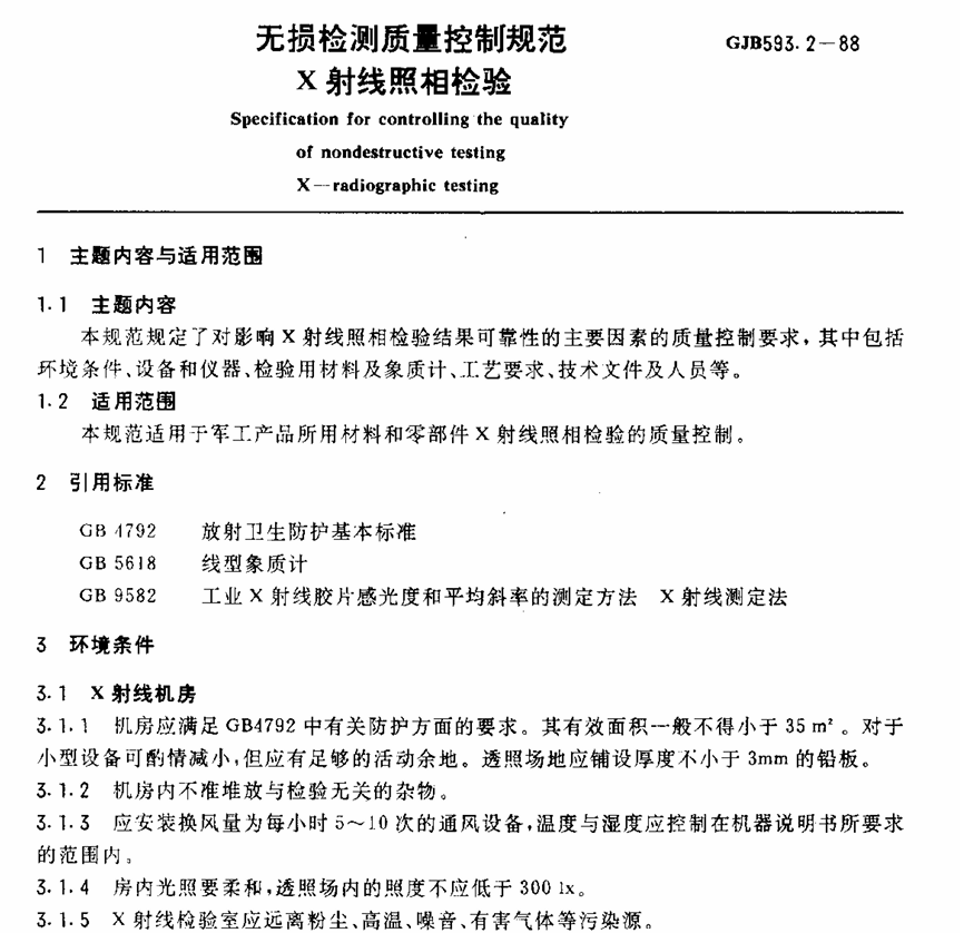 GJB 593.2-1988 无损检测质量控制规范 X射线照相检验